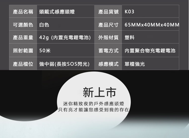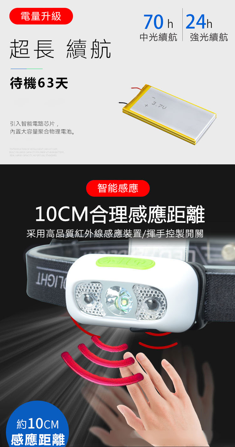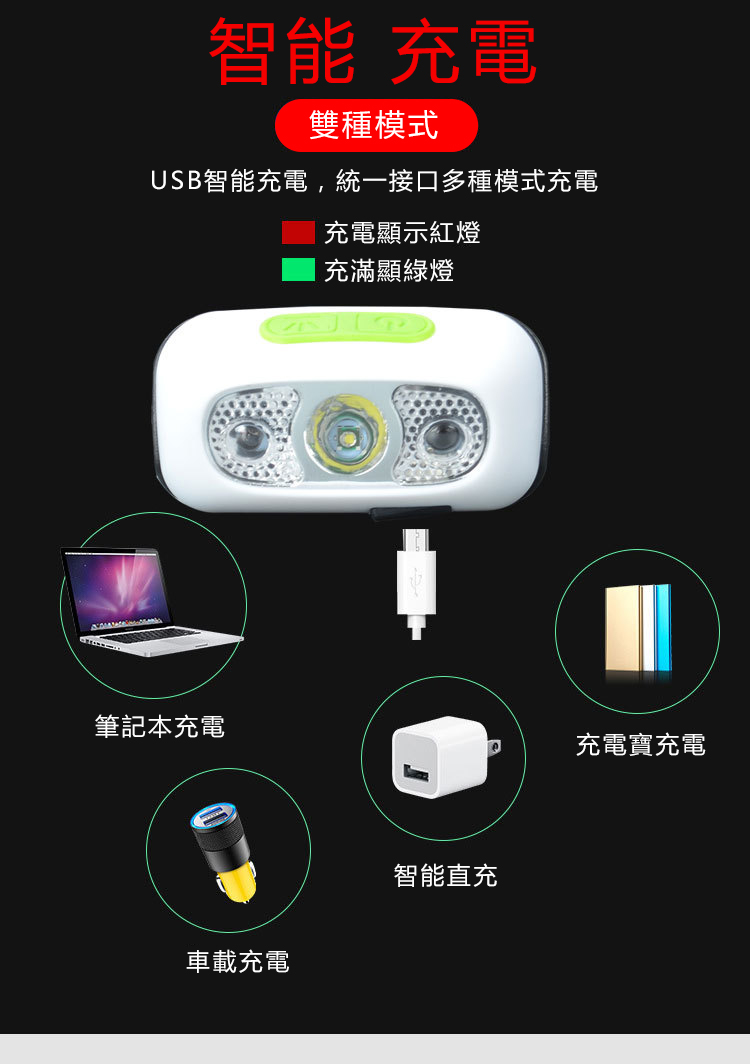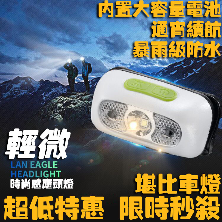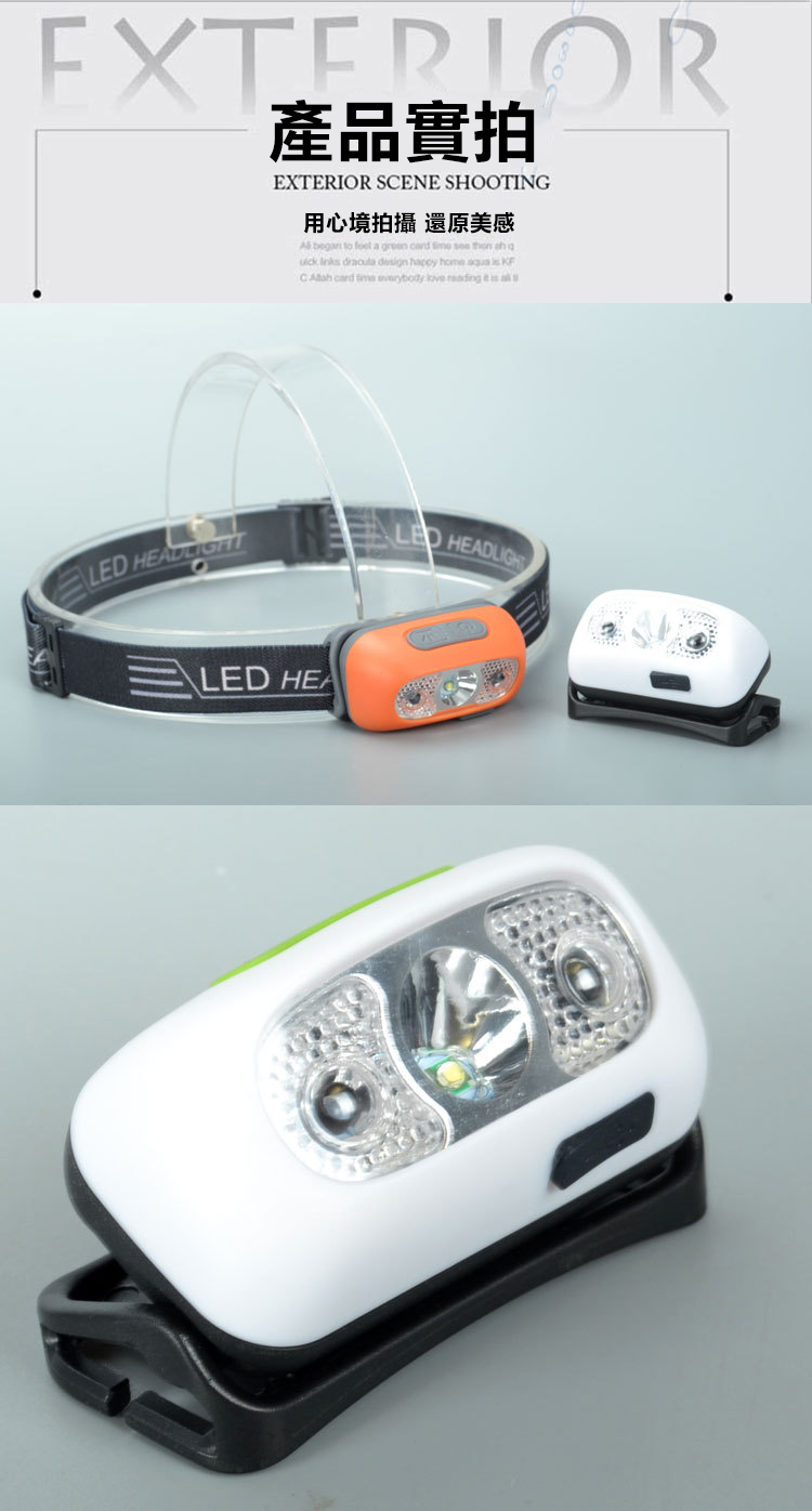 感應式LED強光頭燈,頭戴式頭燈, USB充電式感應式LED強光頭燈採用XPE LED超高亮度燈泡,兩種開關模式:手勢感應+手動操作,可根據個人需求選擇。防水強光感應式頭燈是超輕量揮手開關五段照明USB充電。 露營、夜遊、夜釣,夜晚最佳的照明助手。